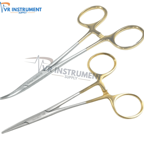 Mosquito Hemostat Forceps Straight & Curved 5″ Gold Handle Instrument Tools 2 Pc